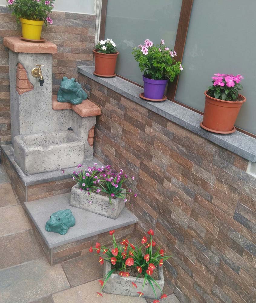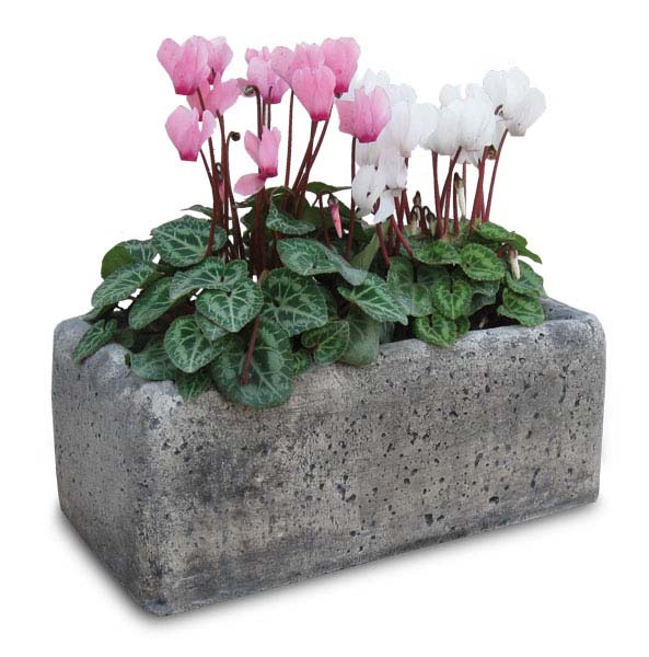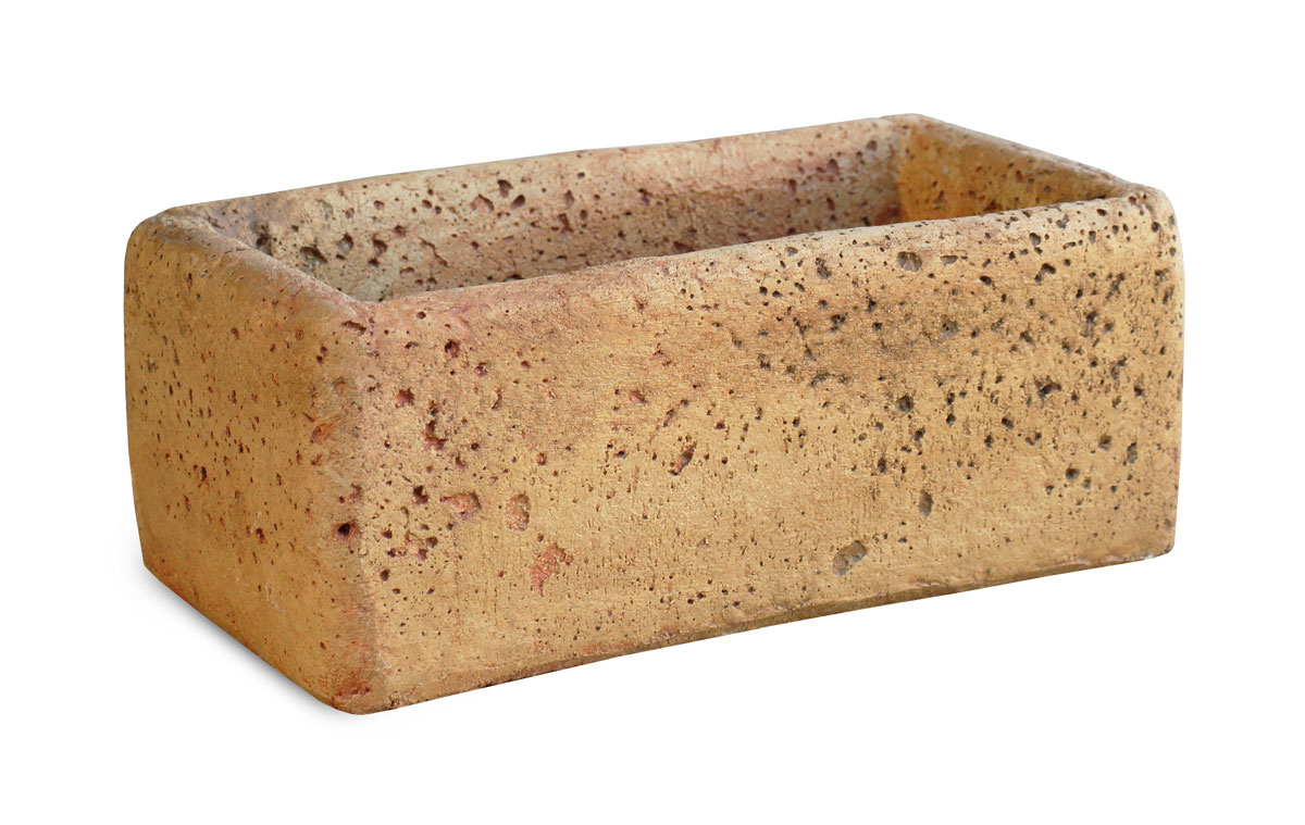 Vasetto rettangolare di piccole dimensioni che trova la sua collocazione ideale come complemento di altri elementi decorativi del giardino.