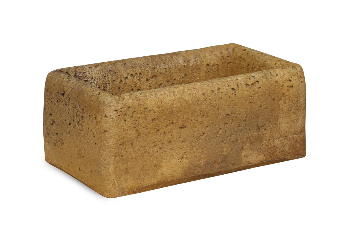Vasetto rettangolare di piccole dimensioni, in pietra ricostruita: trova la sua collocazione ideale come complemento di altri elementi del giardino, come ad esempio ai piedi di una statua, sopra una fontana o di fianco a vasi più grandi.